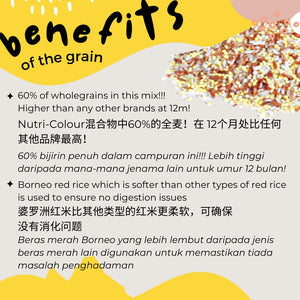 - Contains 60% wholegrains and 2x the amount of red rice used in Junior Nutri-Colour