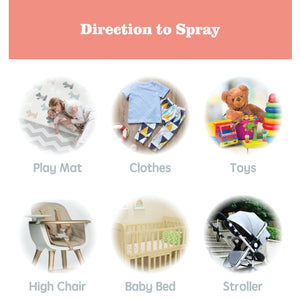 Directions: Spray on the surface of play mat, blocks, toys, strollers, high chairs, and wipe out after 30 seconds with a clean cloth.