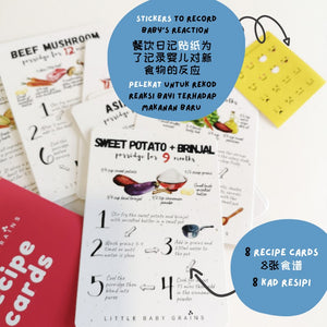 - Illustrated recipe cards with cooking instructions (8 recipes)