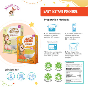 MommyJ Baby Instant Porridge for 7M+, 3 Individual Pouch, 2 Flavors (Chicken Cauliflower, Salmon Pumpkin)